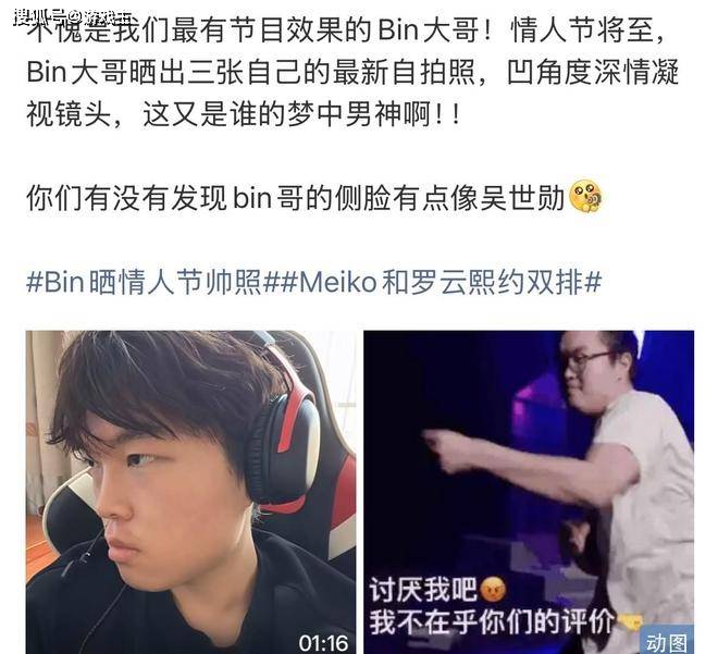 就在最近,他再度晒出了自己的大头美照,看样子应该是在电脑前游戏,正面照,侧面照几乎是无死角的拍摄,甚至感觉自己还抓了两下头发。确实,这段时间bin应该是瘦了不少,整个下巴已经非常尖了,而且还有很多网友表示,现在bin的侧颜有一点神似韩国明星吴世勋,但说实话,也就是恍惚之间吧,仔细查看的话,两个人不能说是一模一样,只能说是毫无关系。感觉bin对于它的颜值确实非常的在意,难道说之前的网友爆料是真的吗?被嫌弃了?